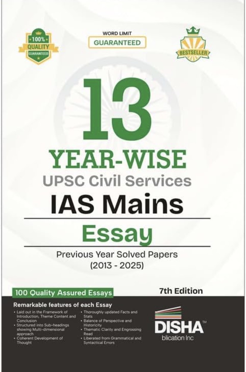 Disha 13 Year-wise UPSC IAS Mains Essay Previous Year Solved Papers (2013 - 2025)[English Medium]