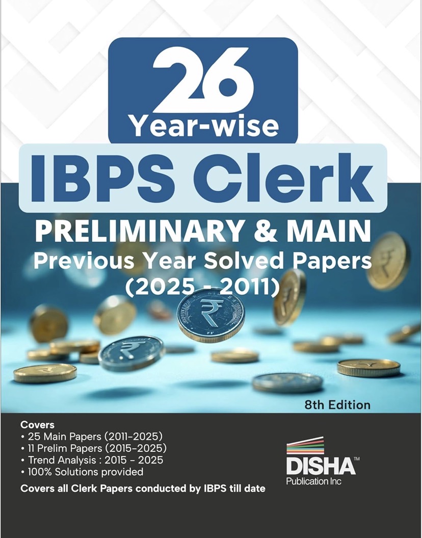 Disha 26 Year-wise IBPS Clerk Preliminary & Main Exams Previous Year Solved Papers (2025 - 2011)[English Medium] Author: Disha ₹365